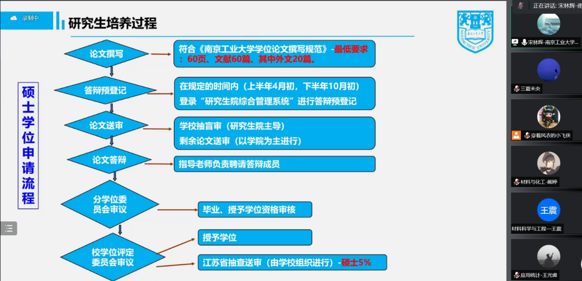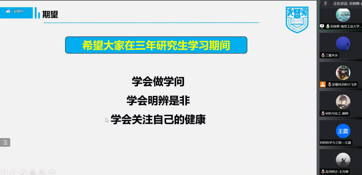 阅读次数: 发布时间:2022-09-13为促进2022级研究生新生尽快适应研究生期间的学习生活,明确学习目标,做好学术规划,9月7日下午,太阳集团tcy8722副经理宋林辉面向全体2022级研究生新生做题为“学科特色与培养方案教育”的讲座,讲座采用腾讯会议方式进行,研究生教学秘书陈庆雯、研究生辅导员江昕玥和2022级全体研究生新生参加。