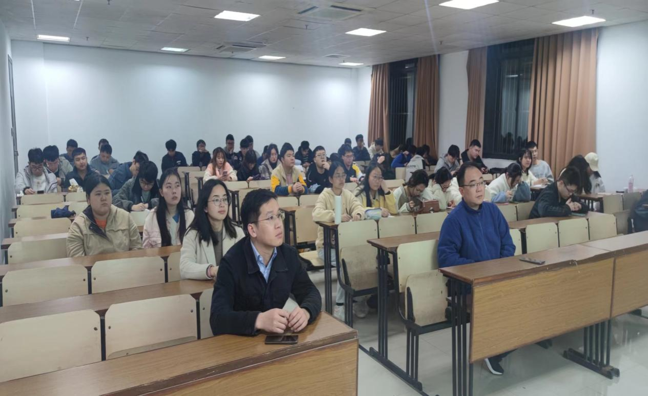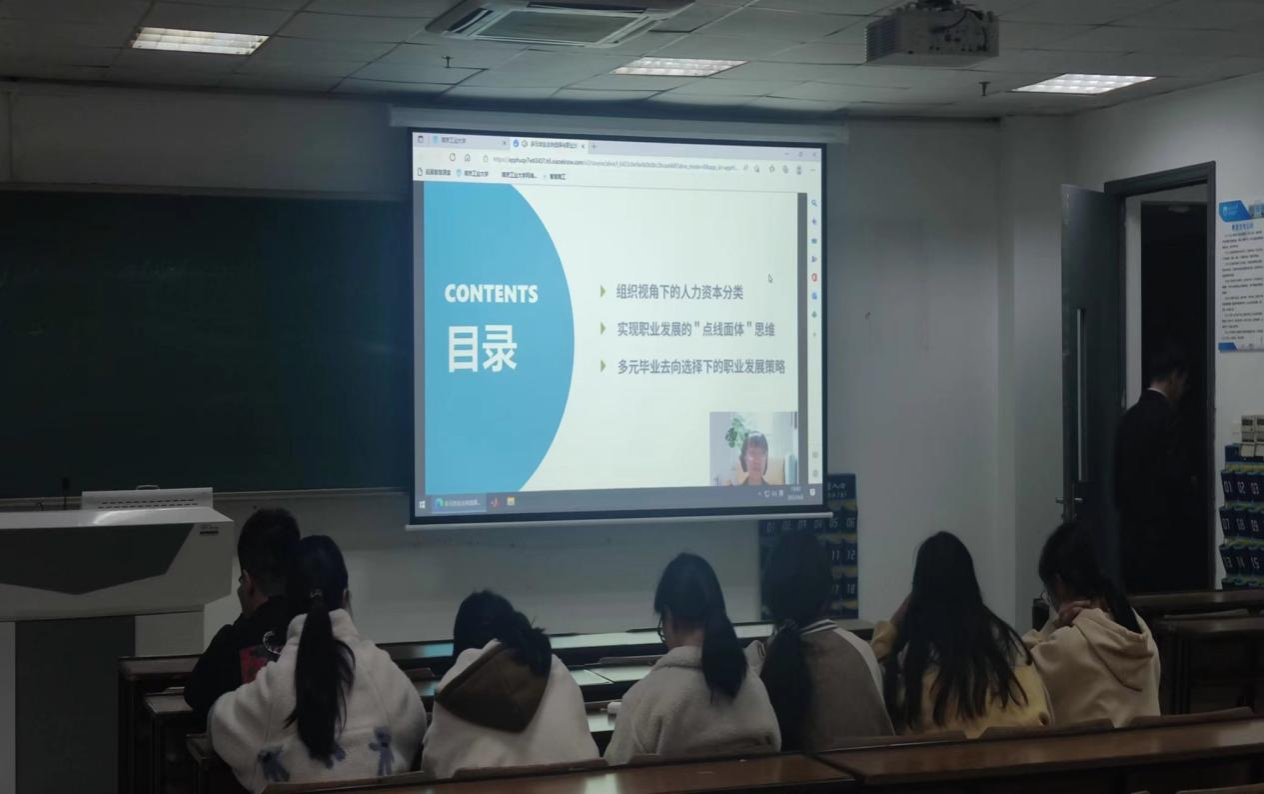 阅读次数: 发布时间:2023-04-124月6日晚,数理公司组织2023届全体毕业生观看职业发展线上直播公开课,其中未落实毕业去向及有二次考研考公意愿的同学在笃学C楼202集体观看,2024届全体毕业生以及2023届与2024届毕业生家长线上观看直播,参加本次活动的还有公司全体辅导员。