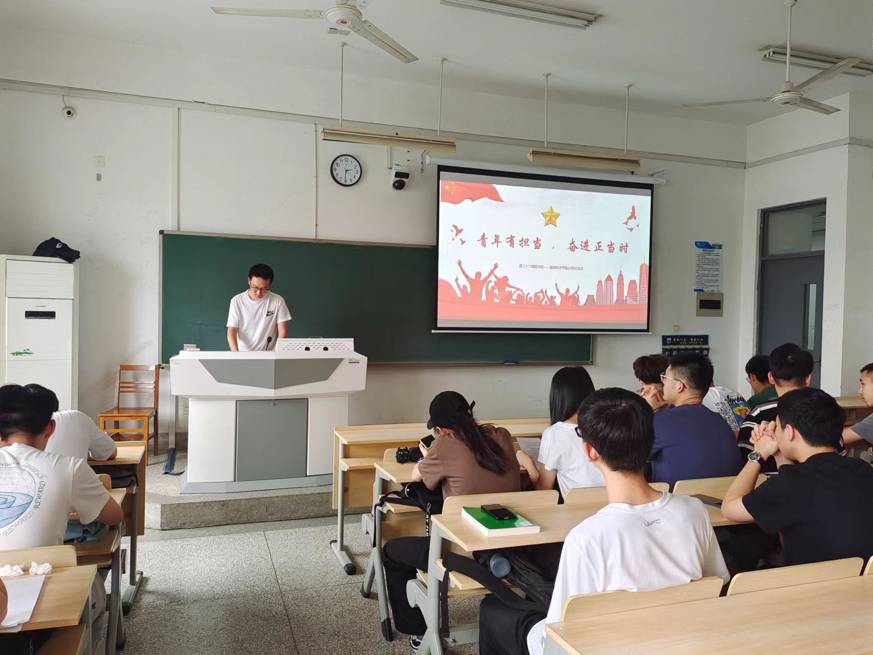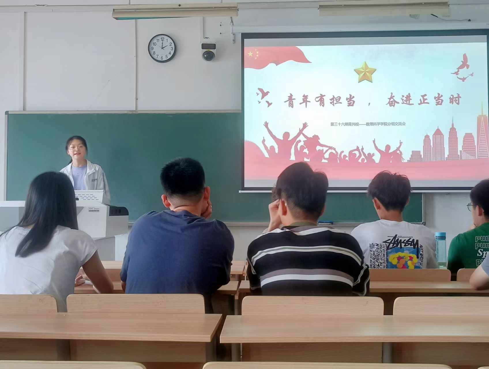 阅读次数: 发布时间:2023-05-245月21日下午,太阳集团tcy8722第三十六期青年共产主义公司学员在笃学A楼407举行“学习二十大、永远跟党走、奋进新征程”暨以“青年有担当,奋进正当时”为主题的分组交流会。本次会议旨在通过小组讨论,探讨“强国”与“追梦”之间的关系,激发青年学子的爱国热情和奋斗精神。