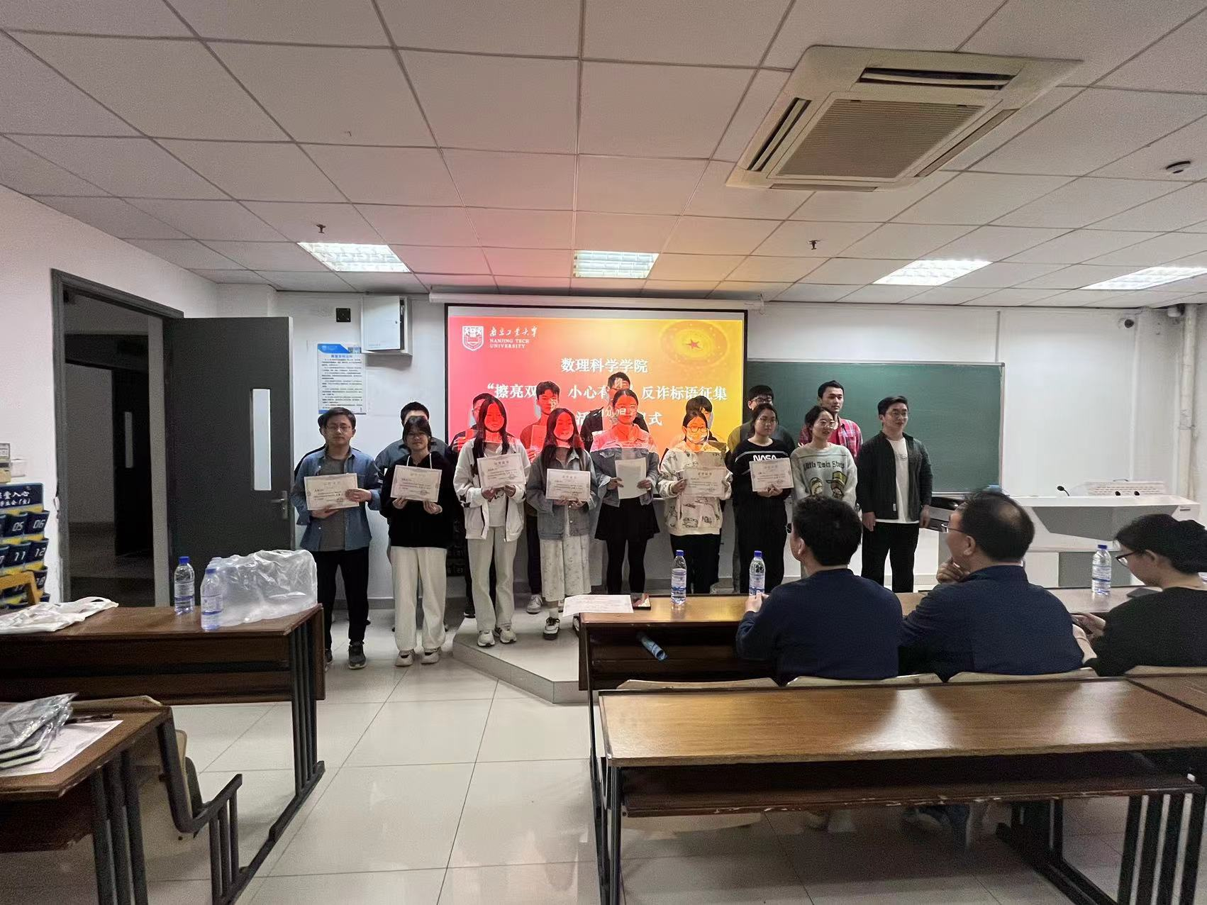 会上,江昕玥老师首先向大家详细介绍了公司本次“反电诈宣传月”主题活动的开展情况并进行总结。接着,公司党委副书记蔡亚峰和学办全体辅导员老师为获奖同学颁发获奖证书及奖品并合影留念。