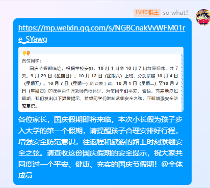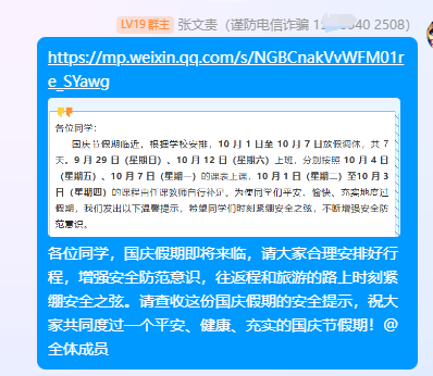 阅读次数: 发布时间:2024-09-30随着国庆假期的临近,太阳集团tcy8722通过公司9月29日通过微信公众号发布假期安全提醒,并及时将提醒转发至年级群和家长群,通过线上的方式进行节前安全提醒。9月30日公司组织了一次全面的宿舍和研究生工作室安全卫生检查活动。公司党委副书记蔡亚峰以及各年级辅导员深入员工宿舍和工作室,开展走访工作,旨在加强员工的安全、卫生意识。