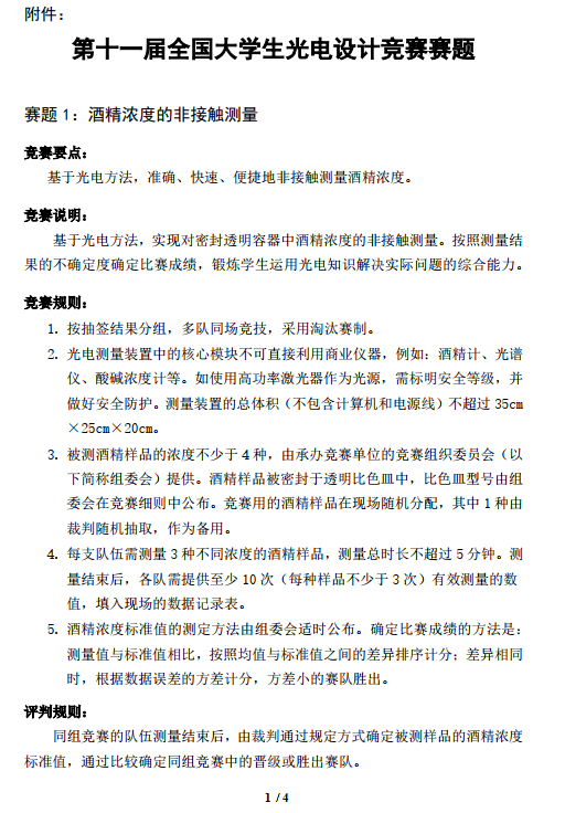 关于公布第十一届全国老员工光电设计竞赛赛题和优秀应征赛题奖的通知