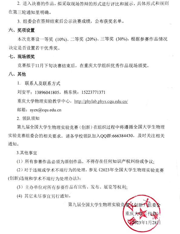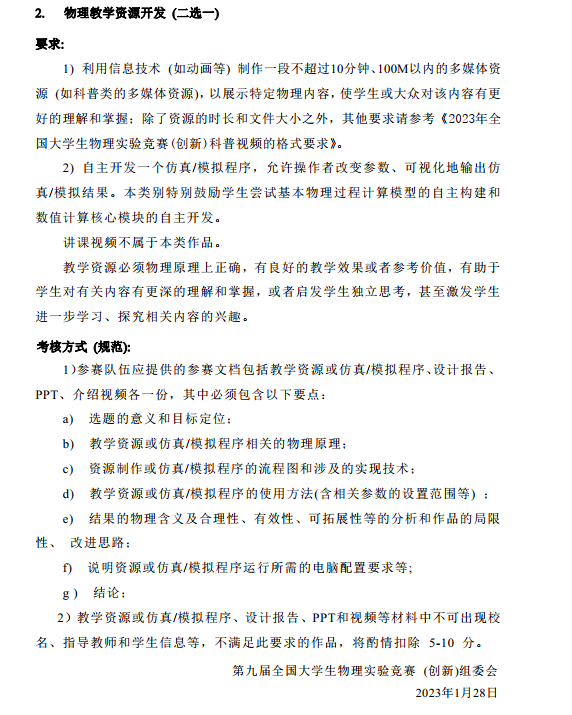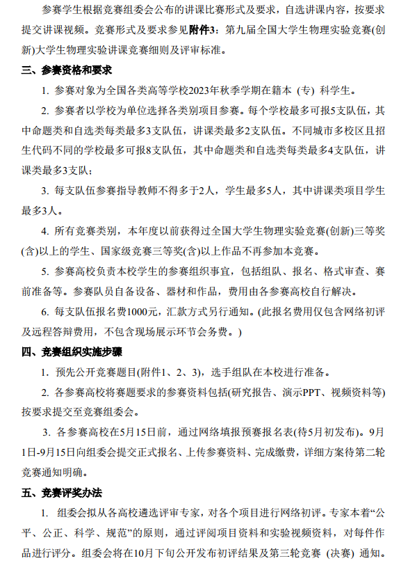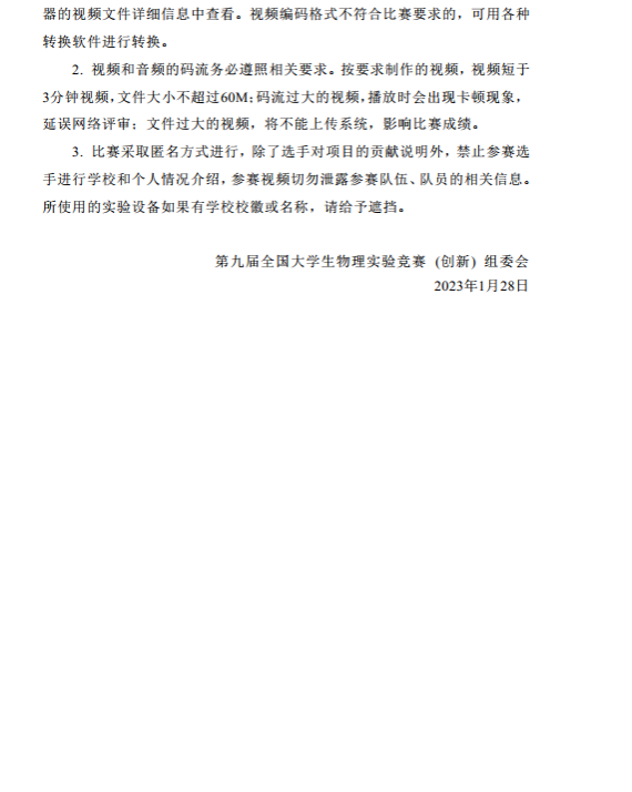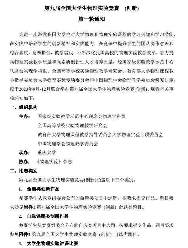 2023年第九届全国老员工物理实验竞赛第一轮通知
